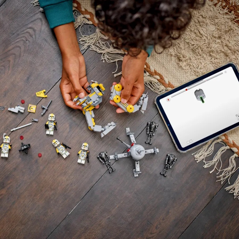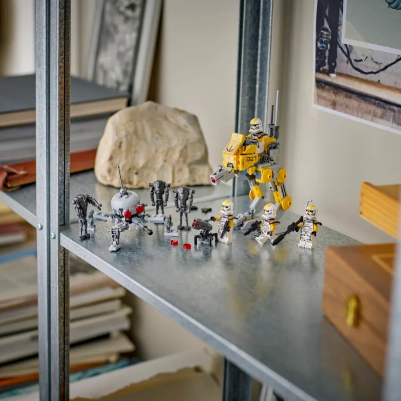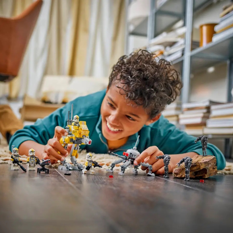 В коробці ти знайдеш чотирьох клонів в культових бронях, готових протистояти трьом грізним супердроїдам-бойовикам. Динамічні сцени сутичок урізноманітнить рухомий дроїд-павук, масивна машина-ходунок AT-RT з кабіною для мініфігурки та вежа з гранатометом, які додають веселощам справжнього характеру.