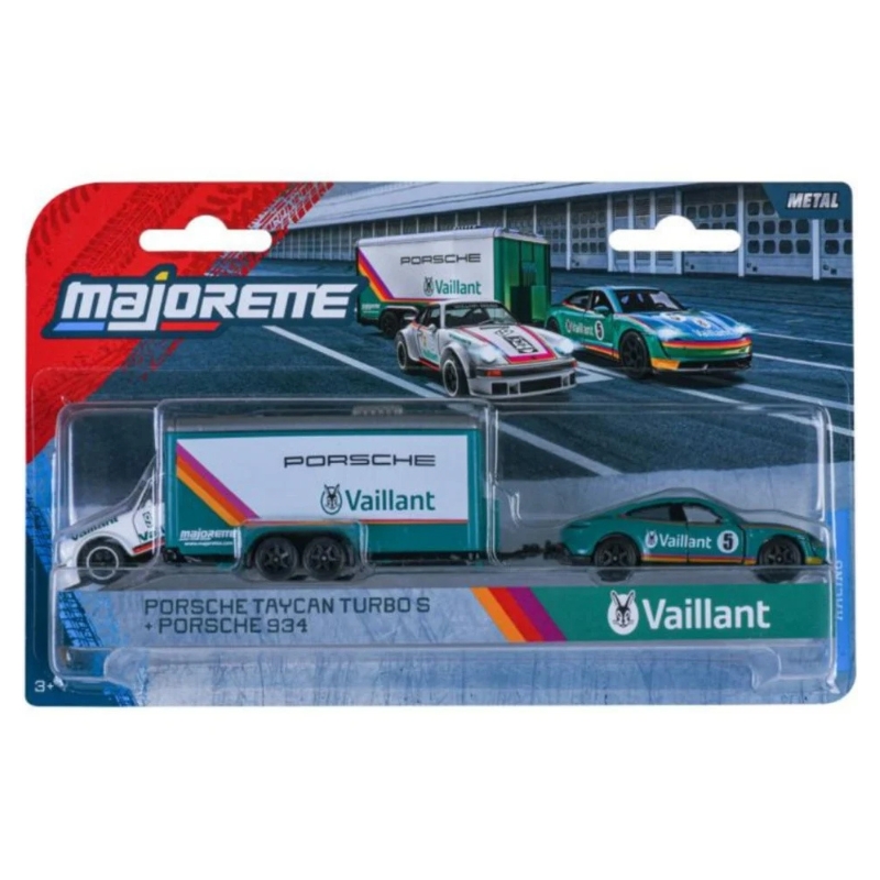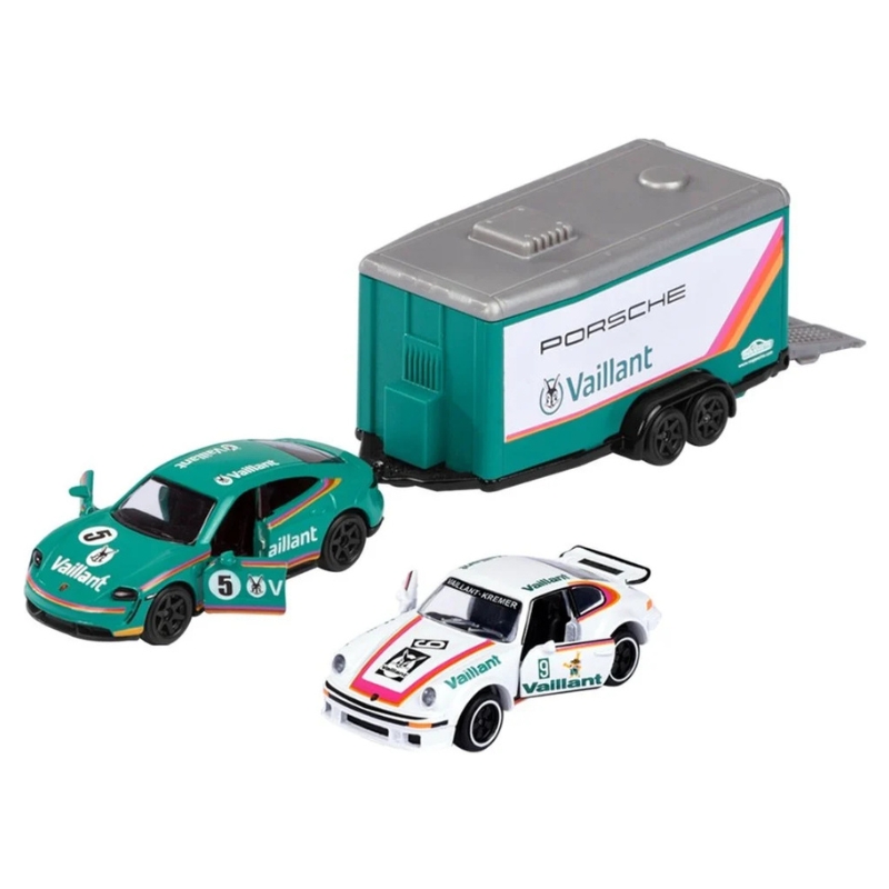 Majorette Racing Deluxe Набір 2 Автомобілів + Причеп Автомобілі Porsche Taycan Turbo S + Porsche 934