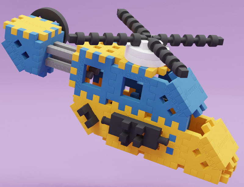 Різноманітні форми елементів зі спеціальним застосуванням. Дитина з запалом і вправністю справжнього експерта сконструює такі будівлі, як дім, вітряк, літак, потяг або гелікоптер.