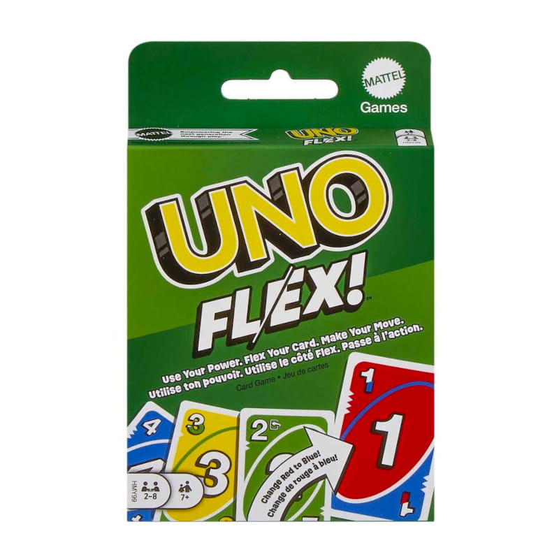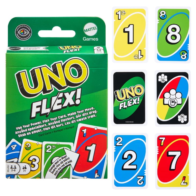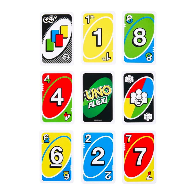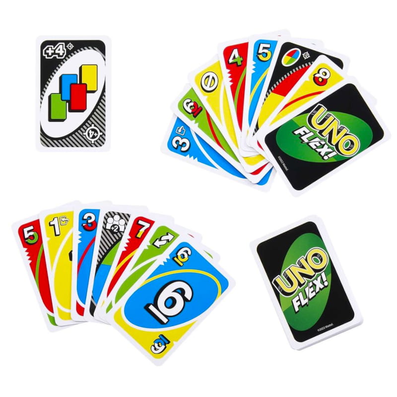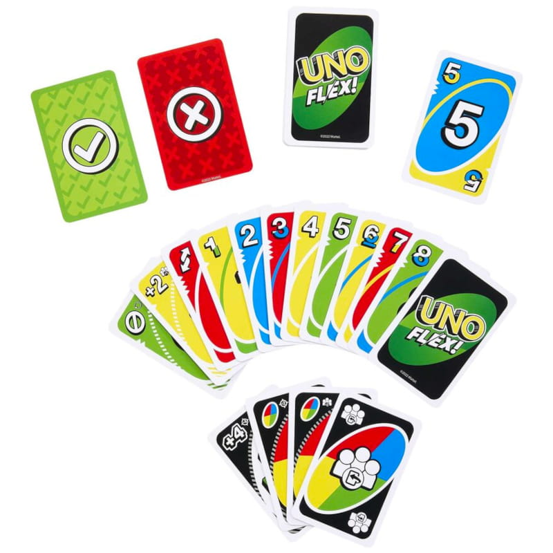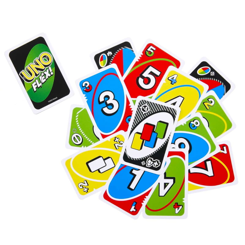 Карткова гра UNO Flex містить спеціальні карти «дії» та «зміни», що дозволяють гравцям змінювати колір і деякі правила.