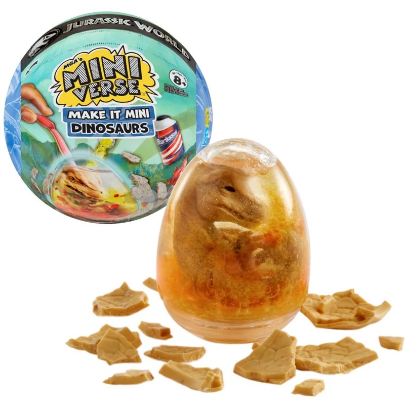 Увійдіть у світ Юрського світу з кулею-сюрпризом MGA’s Miniverse Make It Mini Динозавр! Кожне відкриття – це повна емоцій пригода – ніколи не знаєте, який міні динозавр чекає всередині.