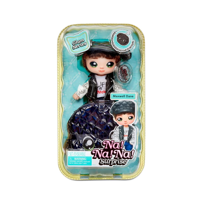 Poznaj Na! Na! Na! Surprise 2w1 Pom Doll Glam Maxwell Dane – niezwykłą lalkę z serii Glam, która wprowadza blask i styl do każdej zabawy!