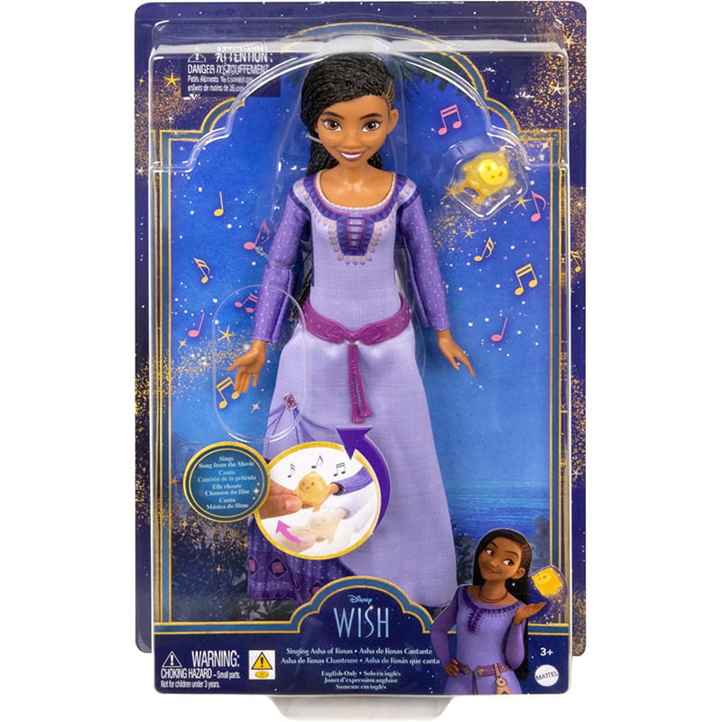 Натисніть кнопку на спині ляльки, щоб почути, як Аша співає фрагмент пісні «This Wish».