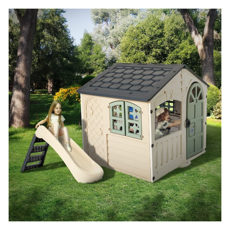 Stabilna konstrukcja i wygodna drabinka pozwalają maluchom bez trudu wspinać się na górę, by z ekscytacją zjechać w dół po kolorowym ślizgu o długości około 130 cm.