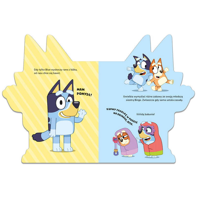 Książka w kształcie uroczej suczki od razu przyciąga wzrok, a otwierając jej strony, dzieci mogą wyruszyć na wspaniałą przygodę. „Poznaj Bluey” to idealny sposób, by bliżej poznać tę pełną energii postać z australijskiego serialu. W środku kryje się mnóstwo zabawnych ciekawostek o charakterze Bluey i jej codziennych radościach, nawiązujących do ukochanych scen z bajki.