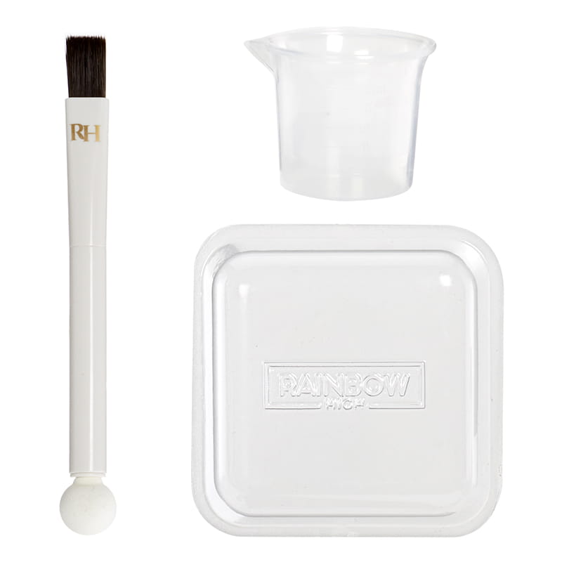 У комплекті є спеціальні, змивальні фарби, які можна використовувати не лише на ляльках, але й на своїх власних волоссі! Достатньо лише додати воду до порошків шести кольорів веселки – рожевого, помаранчевого, жовтого, зеленого, синього та фіолетового – щоб створити водяні фарби, ідеальні для фарбування одягу та волосся.