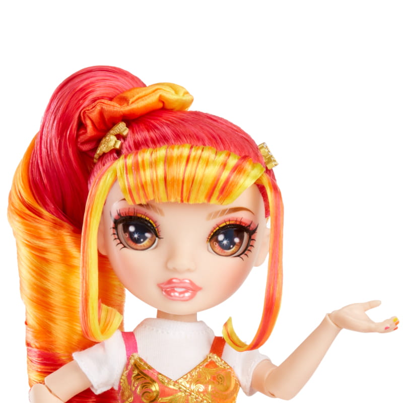Її незвичайні риси та чудове волосся відтінків червоного, помаранчевого та жовтого, заплетене у високий хвіст створюють приголомшливий вигляд. Завдяки повному набору рухливих рук і ніг, ви можете ставити її в різноманітні модні пози. У своєму стильному вбранні вона готова створювати нові, сміливі тренди в шкільному середовищі.