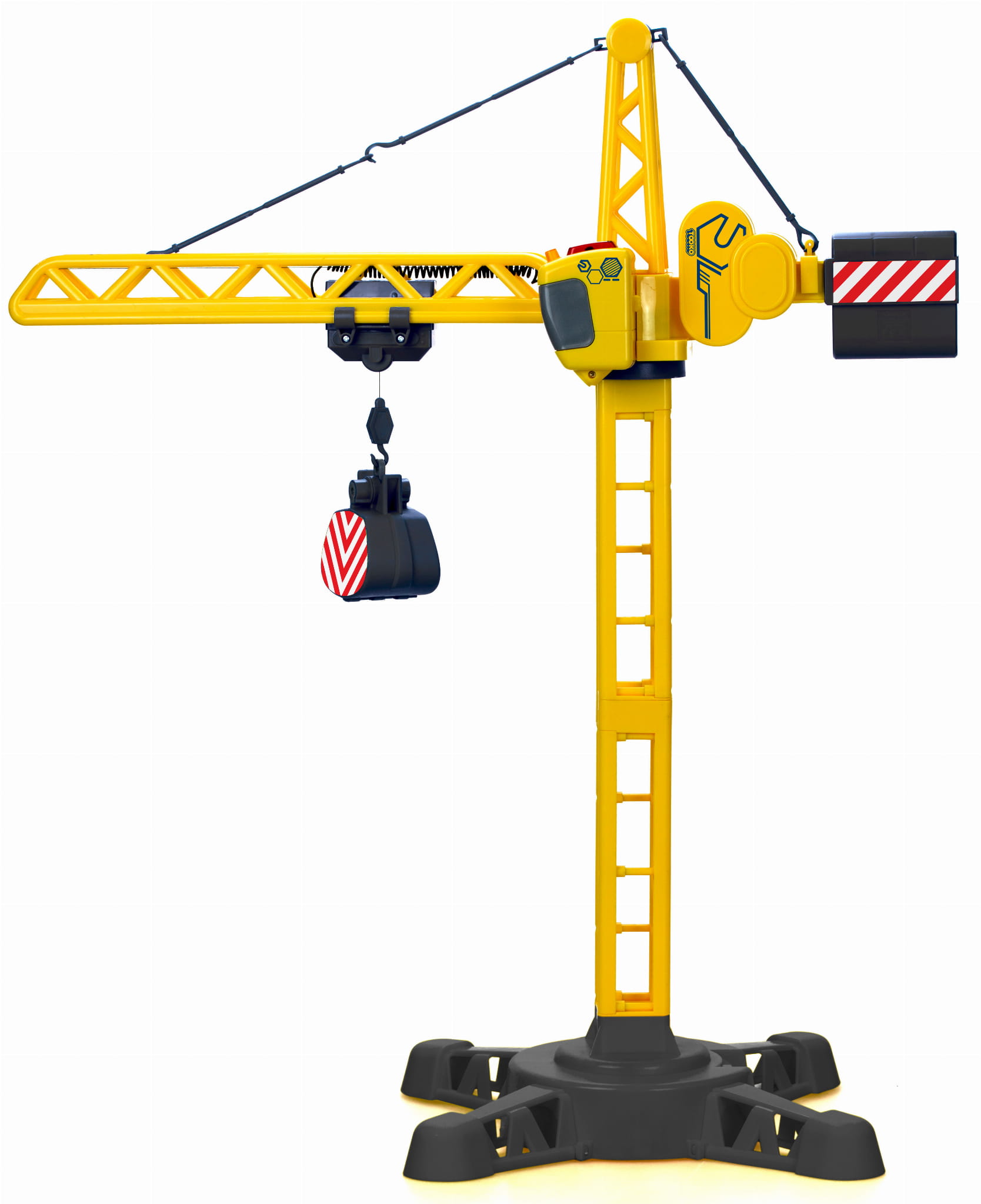 Кран обертається на 360 градусів і має гак, яким також можна керувати, опускаючи його вниз або піднімаючи його вгору. Серед доданих аксесуарів є конуси, пластикові камені та дорожні знаки, які допоможуть перетворити дитячу кімнату на будівельний майданчик! Все для того, щоб забезпечити найменшим екстремально реалістичні враження! Пульт оснащений динаміком та спеціальною кнопкою для активації звуків.