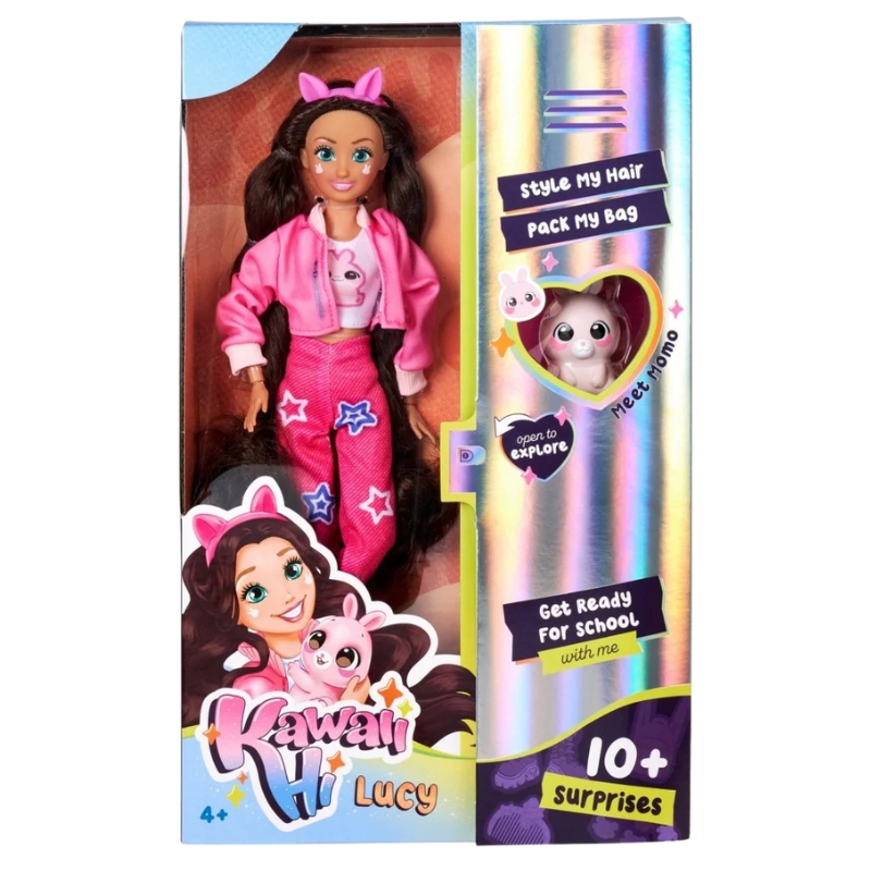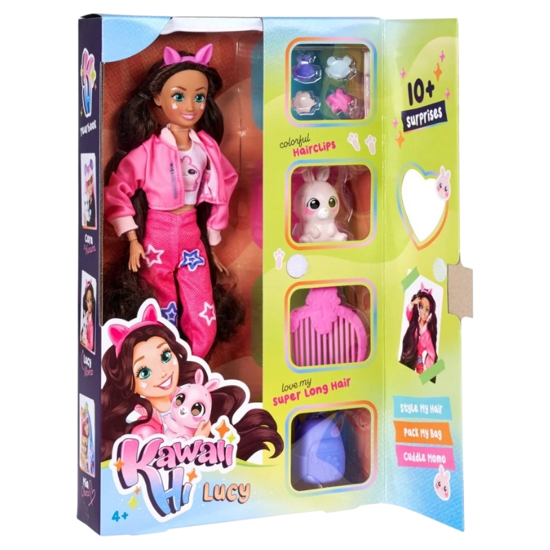 В пастельній країні стилю та усмішки зустрічаємо Люсі та кролика Момо – героїв серії Simba Kawaii Hi, які запрошують дітей до спільної гри, створення історій та модних пригод. Радісна, сповнена енергії лялька одягнена в рожевий костюм, має довге волосся для розчісування та милий макіяж у стилі kawaii.