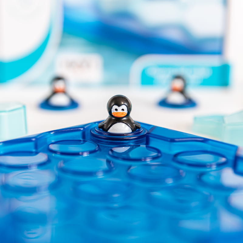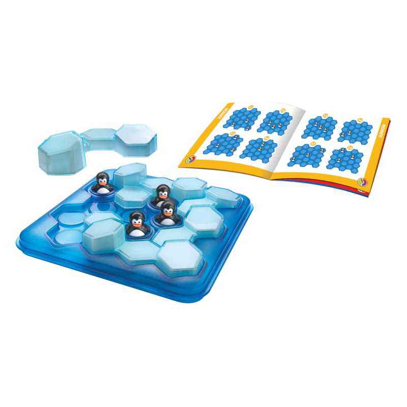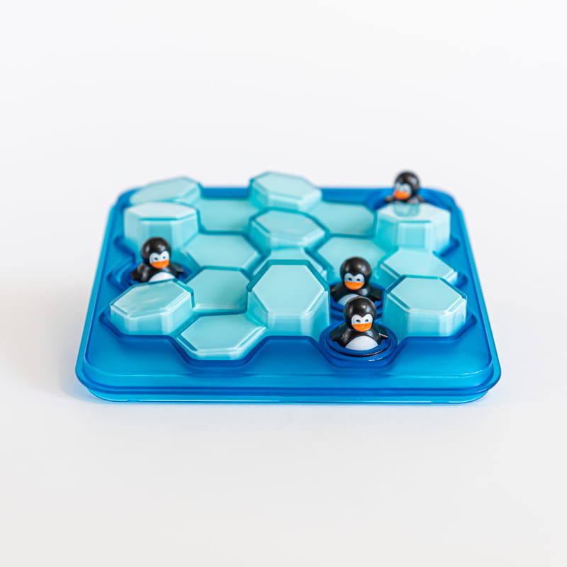 Гра має 60 завдань різних рівнів складності, завдяки чому дитина не лише цікаво проводить час, а й природним чином розвиває навички логічного мислення. Пінгвіни повертаються, цього разу вони будуть плескатися в басейні! Допоможи пінгвінам уникнути зіткнення з крижаною лавою! Розташуй 4 крижані елементи на ігровому полі так, щоб не закрити жодного з пінгвінів.