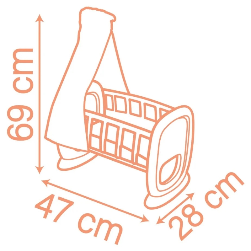 Стильний балдахін з м'якої тканини створює затишний, безпечний простір для ляльки, а ніжне гойдання допомагає «заснути» улюбленій дитині.
