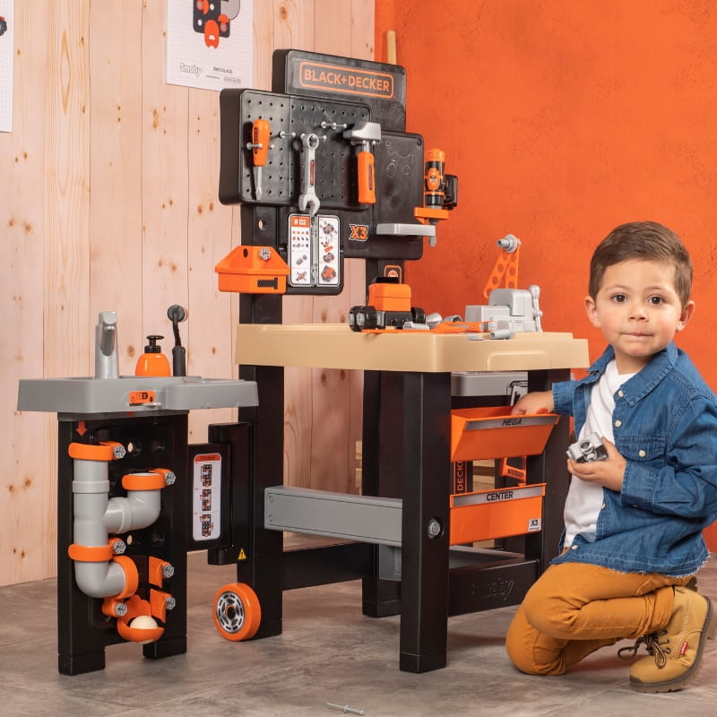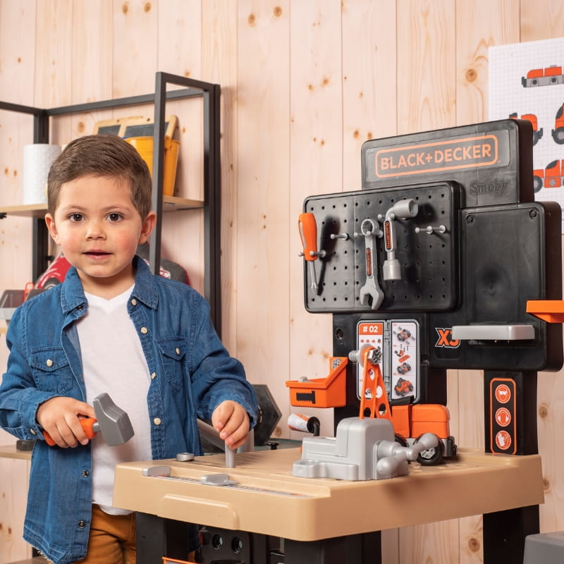 Seria Smoby Black & Decker to licencyjne narzędzia, które w przystępny sposób wprowadzają dzieci w świat domowych napraw, majsterkowania i technicznych wyzwań, jednocześnie rozwijając ich umiejętności praktyczne, myślenie przyczynowo-skutkowe oraz zamiłowanie do tworzenia.