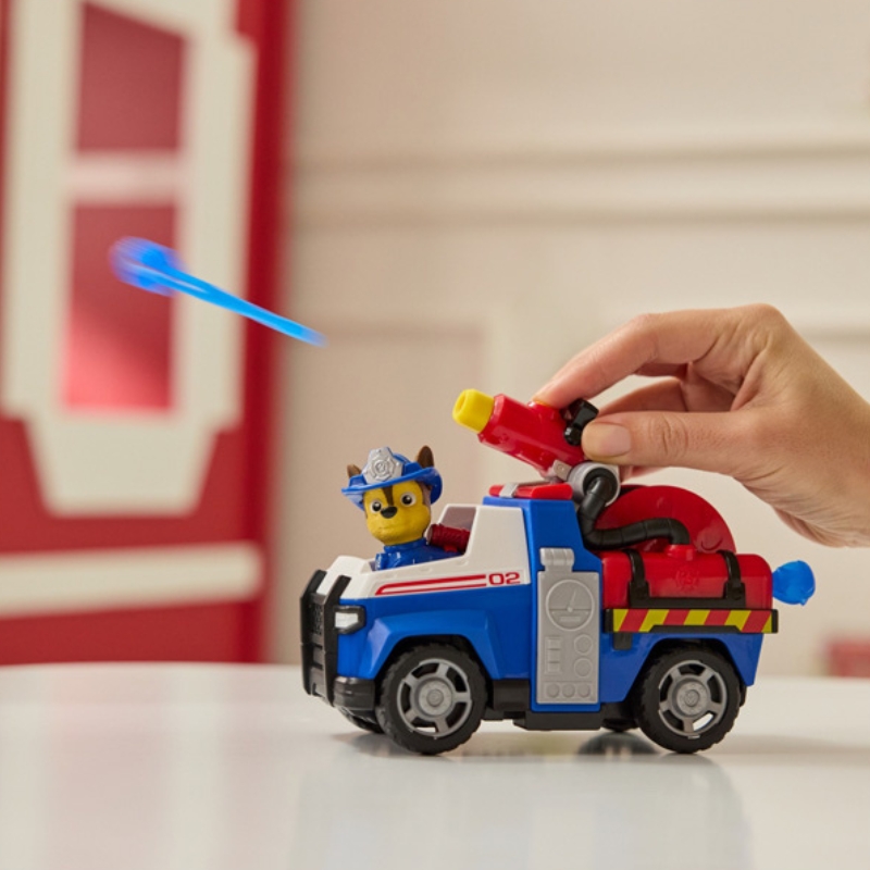 Фігурка Чейза (приблизно 5 см) ідеально поміщається в кабіні транспортного засобу, завдяки чому ти можеш відтворювати сцени з мультфільму або придумувати свої власні рятувальні місії. Вбудовані сховища для набоїв та дві водяні кулі роблять гру ще більш реалістичною та захоплюючою.