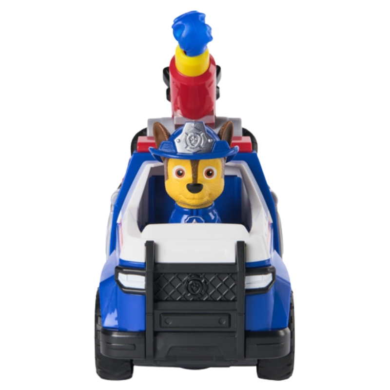 Пожежний автомобіль Чейза Рятувальний Пожежний Крузер — ідеальний супутник для будь-якої рятувальної операції. Перетворює будь-яку гру на динамічну пригоду з серіалу Патруль Псів. Пожежний автомобіль висотою 7 дюймів (приблизно 18 см) має рухливі колеса, відкидну установку для водяних куль та місце для фігурки Чейза в пожежному костюмі.