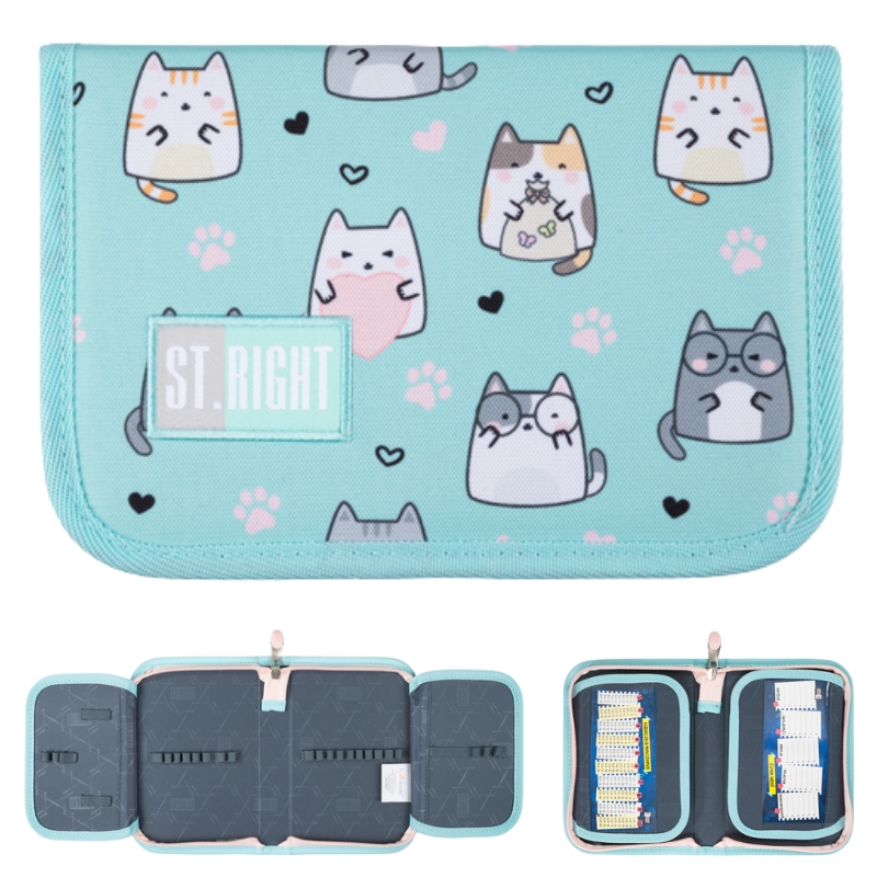 St. Right Пенал Шкільний Двоклапанний Чехол Для Канцтоварів Чарівні Коти