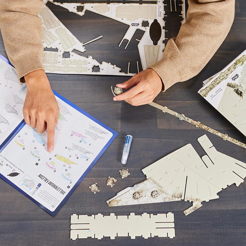 Zestaw 4D Build Millennium Falcon to wyjątkowa okazja, aby zbudować własny model kultowego statku kosmicznego, złożony z aż 223 precyzyjnie wyciętych elementów umieszczonych na 10 arkuszach.