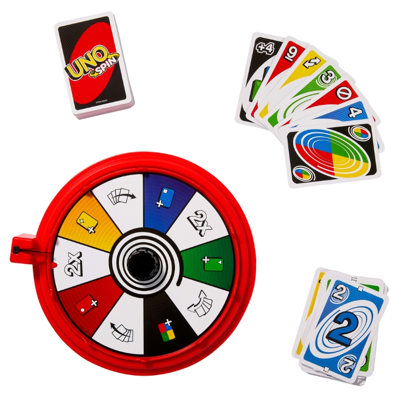 Цей елемент – це, звичайно ж, карта „крутити колесо”! Коли вона з'являється, гравець запускає в рух спеціальне колесо UNO Spin, а всі з нетерпінням чекають результату.