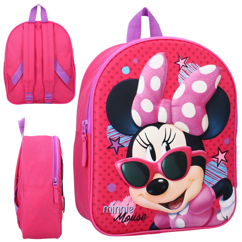 Пропонуємо компактний рюкзак марки Vadobag, який своїм дизайном і міцністю задовольнить не тільки дітей, але й відповість на очікування батьків. Рюкзак виготовлений у відтінках рожевого з фіолетовими акцентами, а спереду прикрашений рельєфним нанесенням 3D, що зображує улюбленого персонажа з мультиків Disney - Мінні.