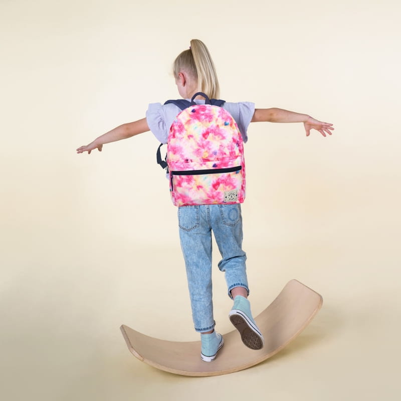 Іноді достатньо одного аксесуара, щоб повсякденність стала яскравішою. Рюкзак Milky Kiss Young, Wild & Free - це ідеальна пропозиція для дівчаток, які люблять виділятися стилем і позитивною енергією. Його tie-dye візерунок в відтінках рожевого не тільки привертає увагу, але й підкреслює особистість маленьких індивідуалісток — незалежно від того, чи йдуть вони до школи, на дитячий майданчик або на вихідні пригоди.