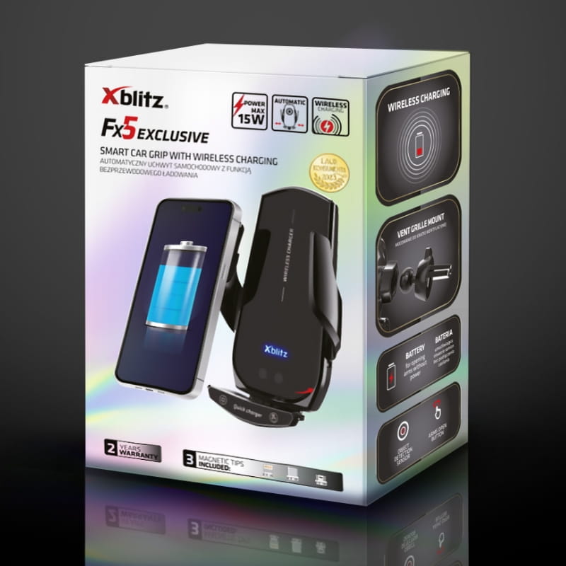 Продукти серії FX від Xblitz створені з думкою про водіїв, які цінують функціональність та порядок в автомобілі. FX5 Exclusive – це поєднання автоматизації, швидкої зарядки та широкої сумісності – щоб кожна подорож була простішою та приємнішою. Вам не потрібно нічого робити – технології працюють за вас.