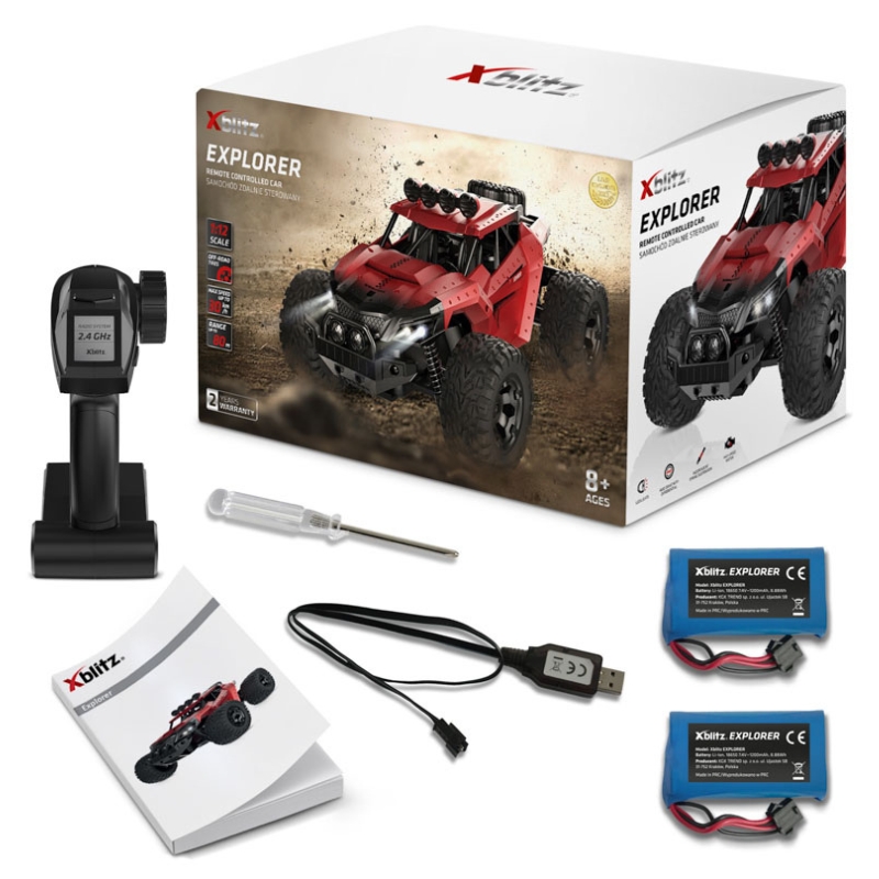 Незалежно від того, чи виберете їзду вдома, на подвір'ї чи в терені – Xblitz Explorer подарує незабутні враження. Це ідеальний автомобіль RC для кожного, хто мріє про високу швидкість, відмінне керування та емоційну гру.