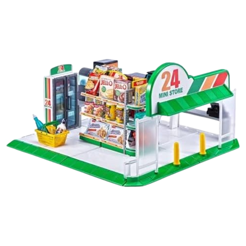 У наборі ти знайдеш все, що потрібно, щоб відкрити власний міні магазинчик – від підставки та вітрини, через полички та касовий стіл, до унікального продукту, доступного лише в цьому наборі.